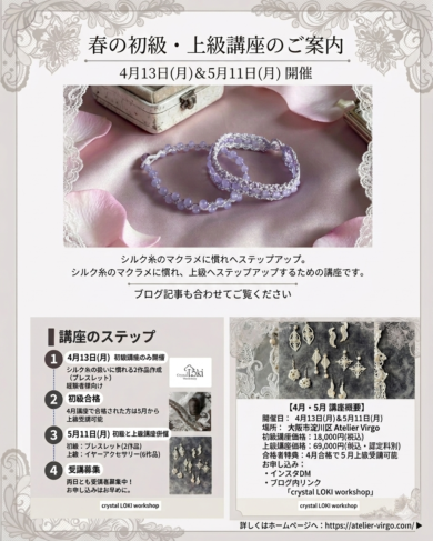 【募集】4/13(月)・5/11(月)開催!シルク糸で紡ぐマクラメ講座のご案内