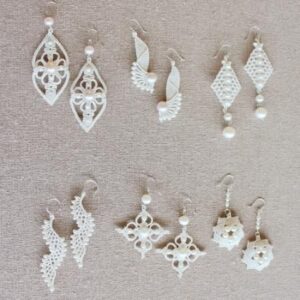 光沢感のあるLOKIオリジナルシルク糸を使って、編み上げるシルクレースイヤリングです。(ピアスまたはイヤリングにお仕上げいただきます)